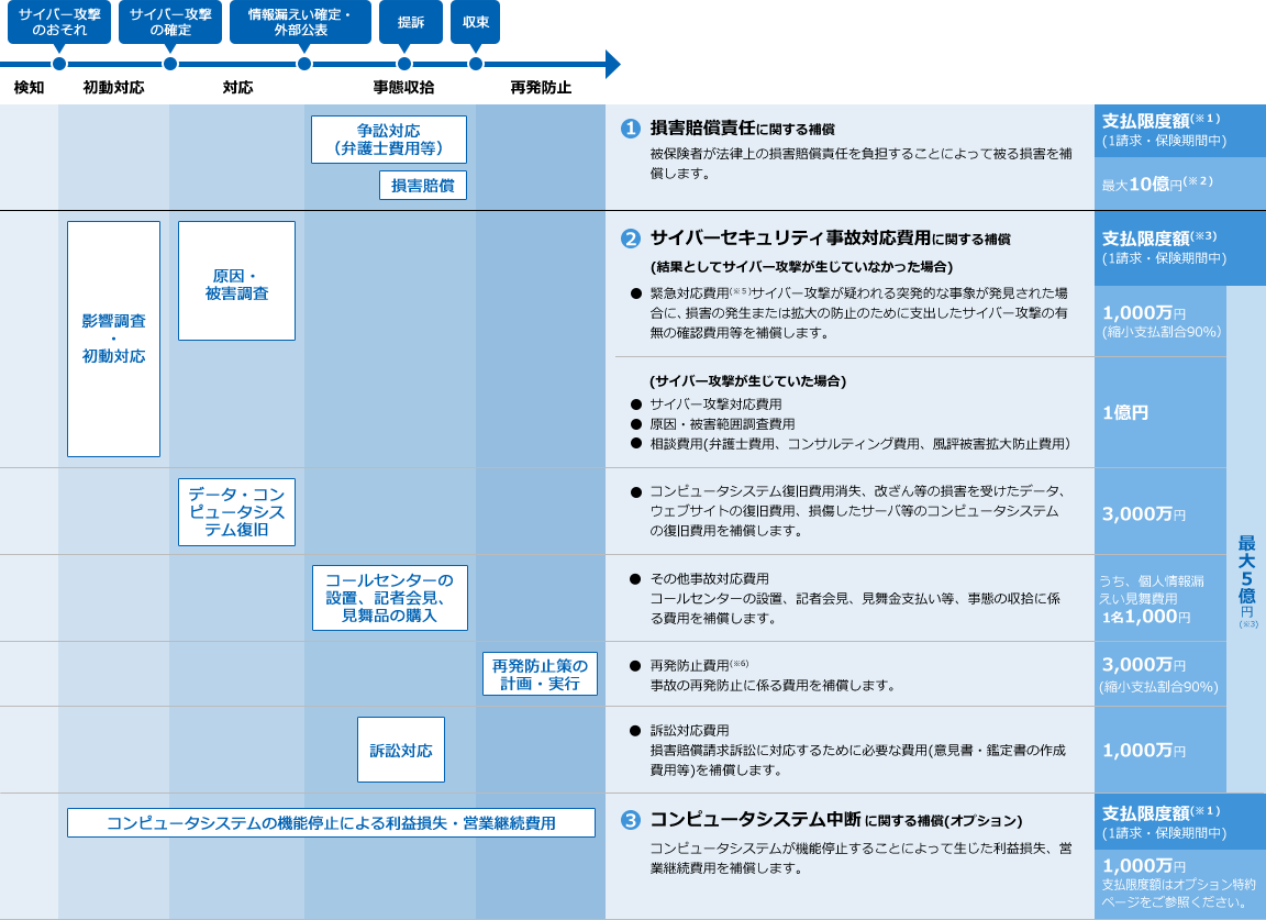 - (※2)「情報の漏えいまたはそのおそれ」および「人格権・著作権等の侵害」を除きます。